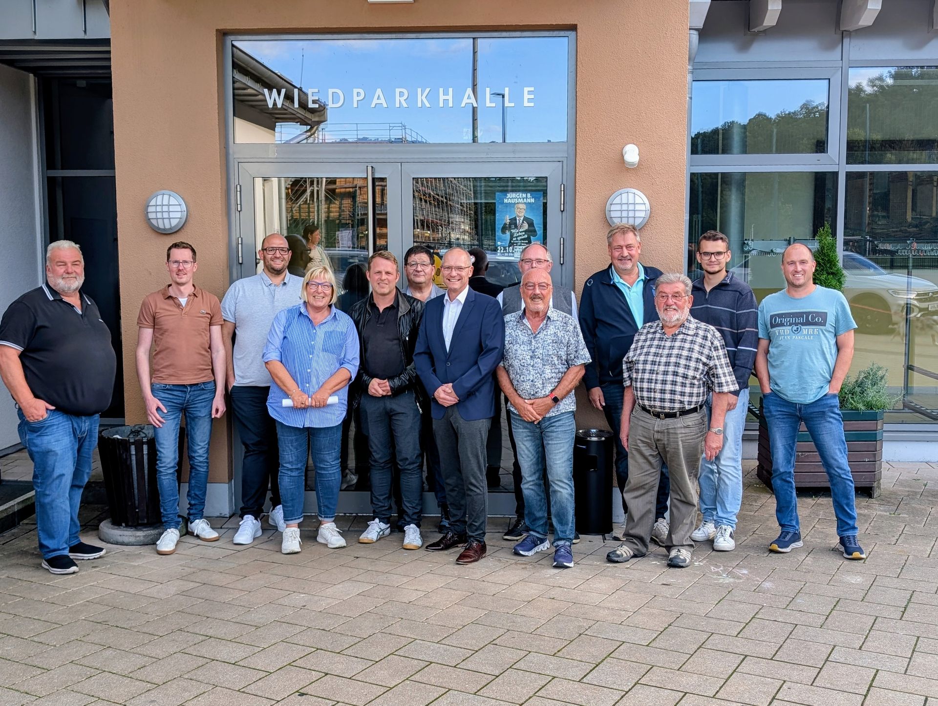 Ortsbürgermeister Thomas Junior und die Ratsmitglieder freuen sich über die Inbetriebnahme einer weiteren PV-Anlage auf einem kommunalen Gebäude. Im Jahr 2023 hatte der Gemeinderat, auf Grundlage einer Empfehlung des Fachbereiches Klimaschutz, den Bau auf der Wiedparkhalle in Neustadt, einstimmig beschlossen. Die Wiedparkhalle ist die größte Versammlungsstätte (ca. 700 Personen) in der Ortsgemeinde Neustadt(Wied) und wird für zahlreiche kulturelle Veranstaltungen genutzt. Entsprechend hoch ist der Strombedarf und es war naheliegend auch hier eine PV-Anlage zu errichten. Die Anlage hat eine Leistung von ca. 44 kWp und ist mit einem Batteriespeicher ausgerüstet. So kann der Eigenverbrauch erhöht und gleichzeitig das Stromnetz entlastet werden. Die Kosten der Anlage betragen ca. 66.000 €. Die Anlage wird pro Jahr ca. 42.000 kWh sauberen Solarstrom produzieren, was bilanziell betrachtet den Bedarf der Wiedparkhalle vollständig abdeckt. Damit werden nicht nur die Stromkosten gesenkt, sondern auch der Klimaschutz unterstützt – denn pro Jahr werden so ca. 13,5 to CO2 (bezogen auf den Strommix in DE von 2024) eingespart. Die PV-Anlage auf der Wiedparkhalle ist bereits die 7. Anlage auf einem kommunalen Gebäude der Ortsgemeinde, wobei die erste Anlage bereits 2010 errichtet wurde. Die gesamte Anlagenleistung beträgt nun 190 kWp. Für die Gemeinde Neustadt(Wied) ist und bleibt der Umstieg auf erneuerbare Energien auf ihrer Agenda. Dies zeigt auch das seit Mitte 2022 bestehende PV-Förderprogramm für private Haushalte. Hierfür hat die Gemeinde bisher 500.000 € bereitgestellt.